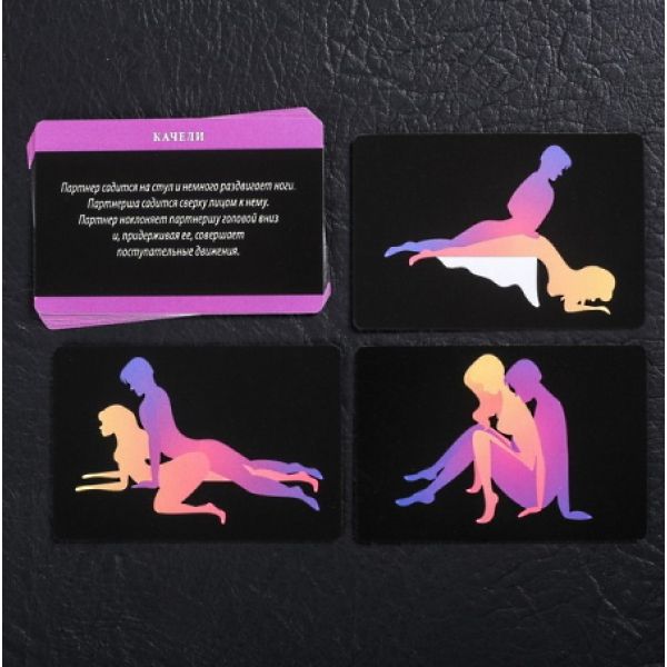 Также мы подготовили для вас карточки «Позы». По очереди вытягивайте их, зачитывайте описание и смотрите на картинку. Вот и всё, осталось только воплотить её в жизнь!