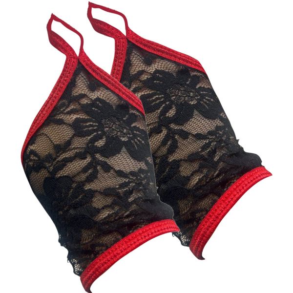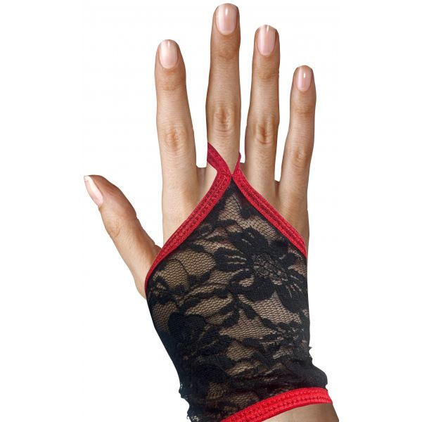 Изящные черно-красные митенки из кружева OS