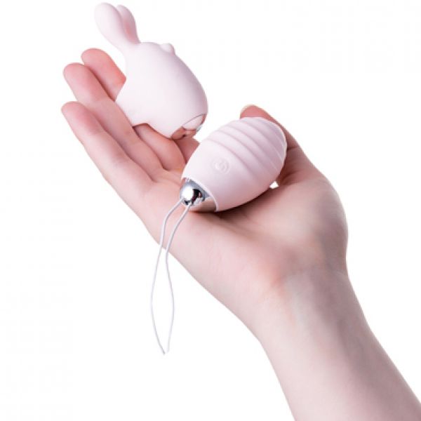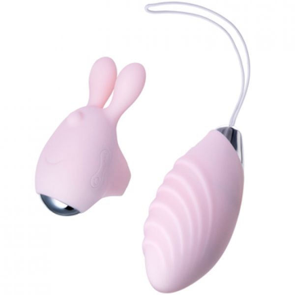 Эти игрушки работают как в паре, так и по отдельности. Милый зайчик - это одновременно вибронасадка на палец и пульт дистанционного управления пулей. Вибрацию игрушек можно синхронизировать, а можно наслаждаться разными режимами.