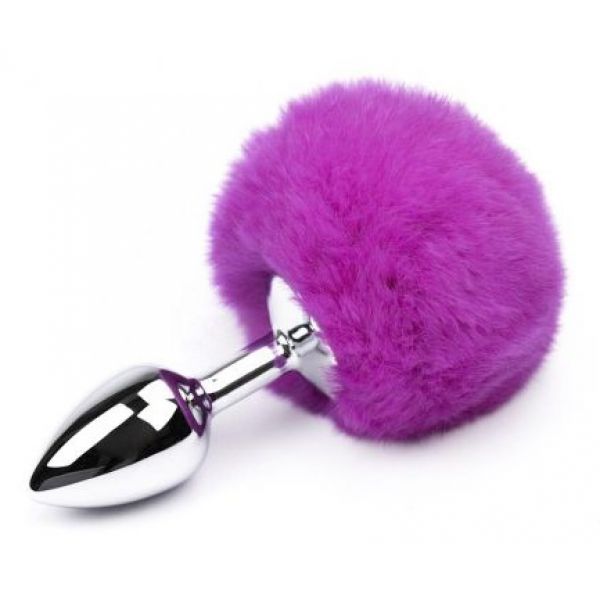 Анальная пробка из металла с ярко-розовым хвостиком кролика
