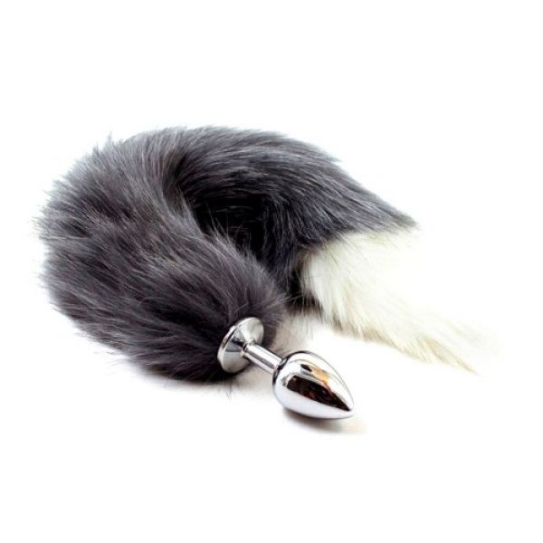 Металлический анальный стимулятор с великолепным серым лисьим хвостиком.