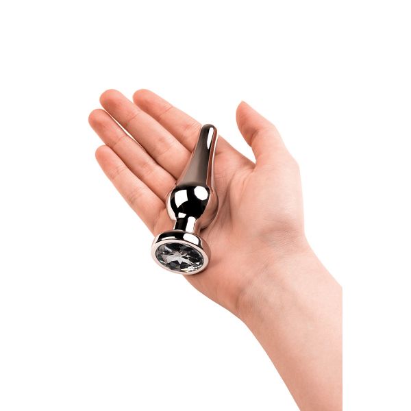 Анальный страз Metal by TOYFA, металл, серебристый, с кристаллом цвета алмаз, 10 см, Ø 3 см, 95 г
