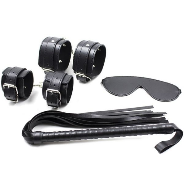 БДСМ набор для игр (плеть, наручники, поножи, маска)