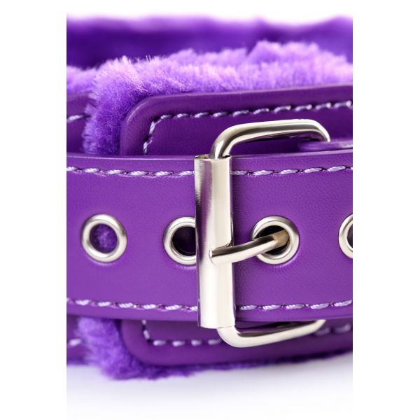 В комплекте маска, оковы, ошейник, флоггер, кляп, наручники, контракт, 30 игровых карточек.