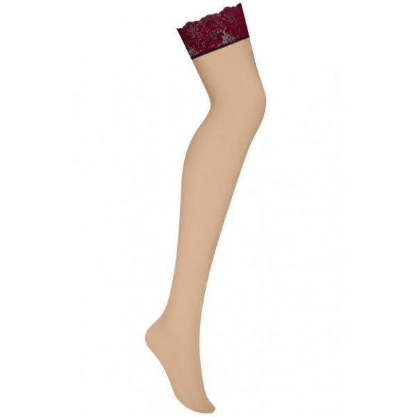 Классические бежевые чулки - прекрасное дополнение к любому нижнему белью! А если они имеют яркую деталь в виде кружевной резинки?