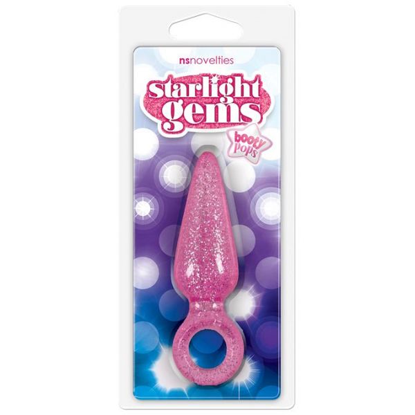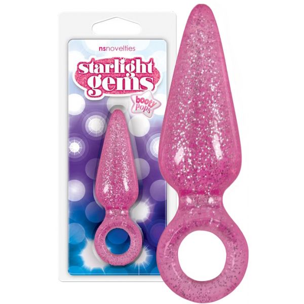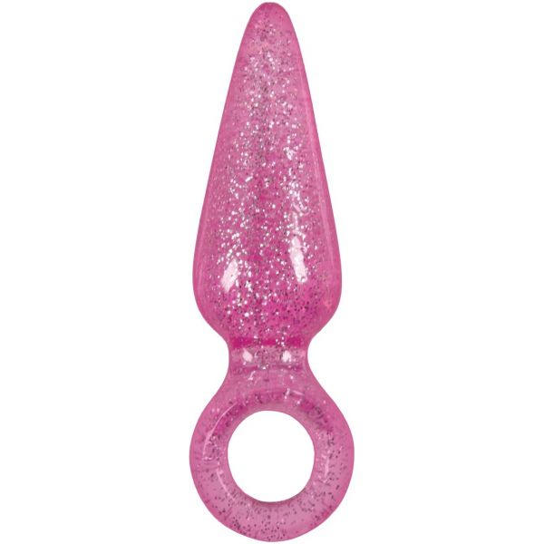 Блестящая анальная втулка Booty Pops с кольцом на пальчик розовая