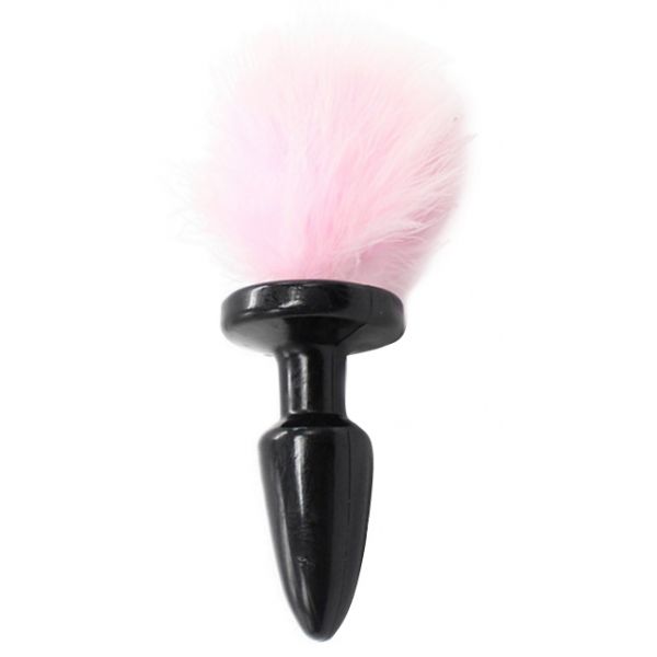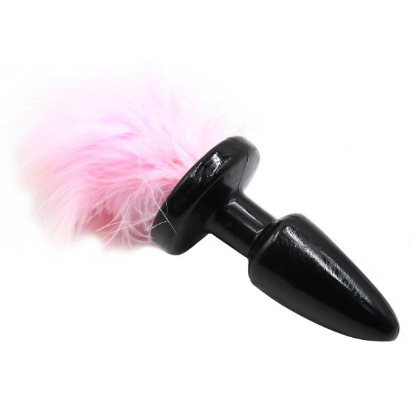 Черная силиконовая анальная пробка с пушистым розовым хвостиком