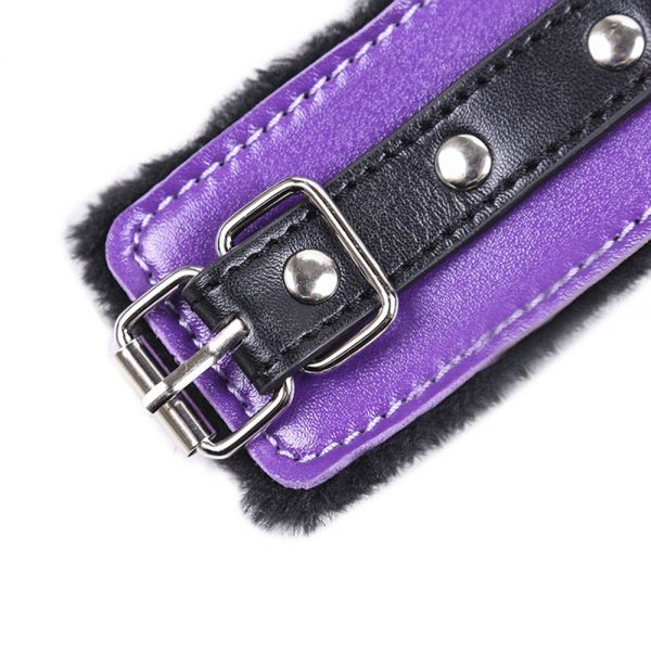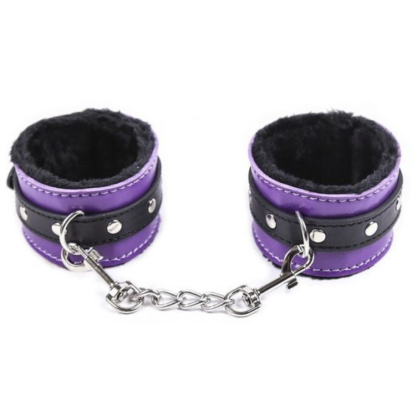 Металлическая фурнитура обеспечивает качественную фиксацию. Наручники соединяются между собой цепью с карабинами, благодаря чему обеспечивается достаточно жесткая сцепка.