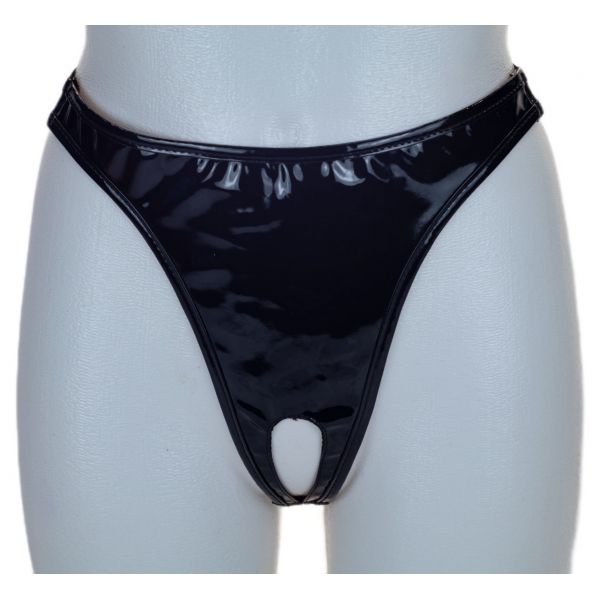 Модель, выполненная из искусственной лакированной кожи, сексуально подчеркивает бедра и имеет доступ для занятий сексом. Снимать трусики при этом необязательно!