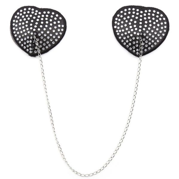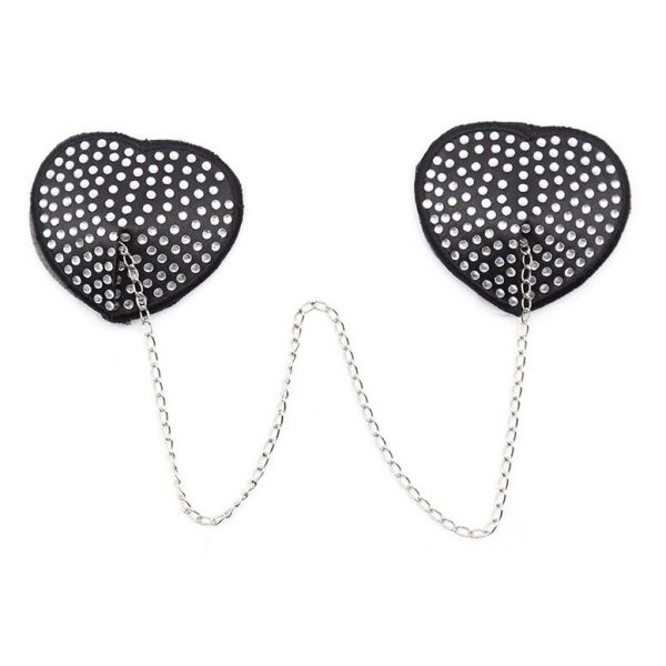 Черные пэстисы-сердечки со стразами и цепочкой