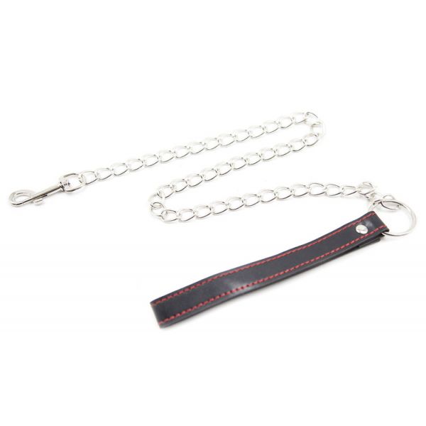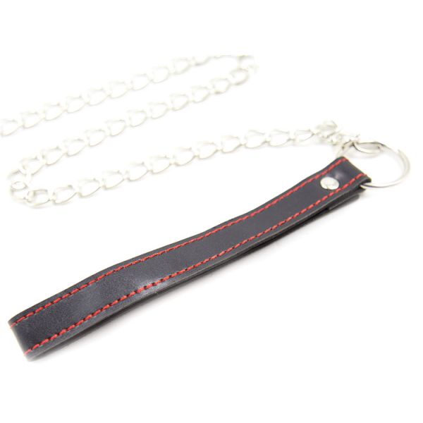 Черный поводок с красной строчкой для БДСМ аксессуаров с цепочкой