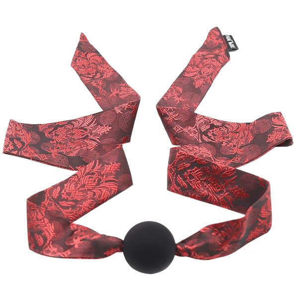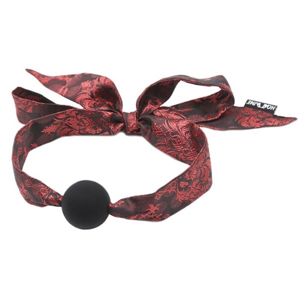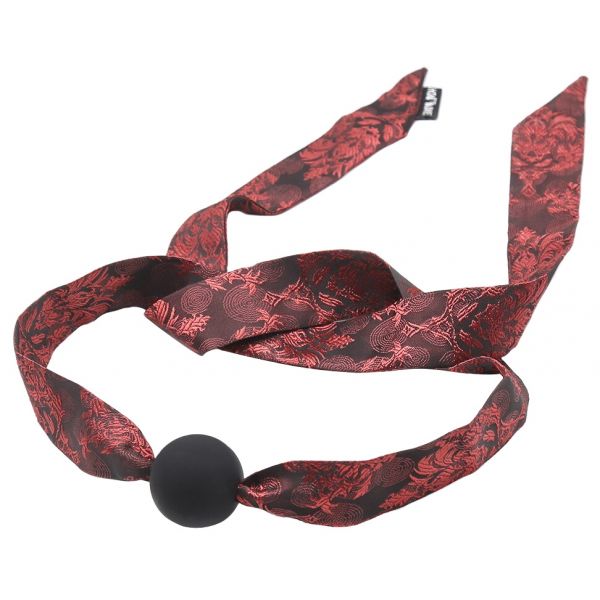 Кляп невозможно выплюнуть, он надежно фиксируется при помощи ленты, которую можно завязать, подобрав комфортный размер. Декорированная красным узором лента добавит образу особый шарм...