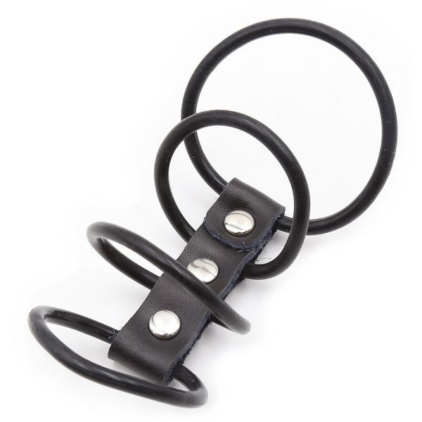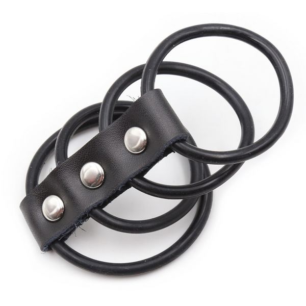 Наибольшее кольцо фиксирует основание пениса и мошонку, три кольца поменьше надеваются на ствол пениса.