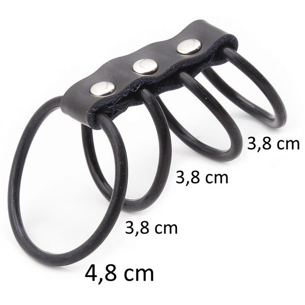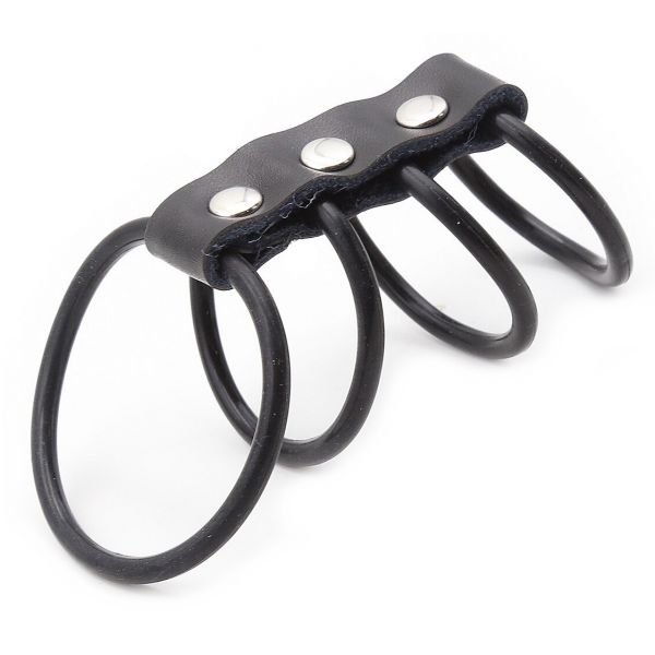 Четыре эрекционных кольца из силикона на кожаном ремешке