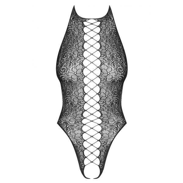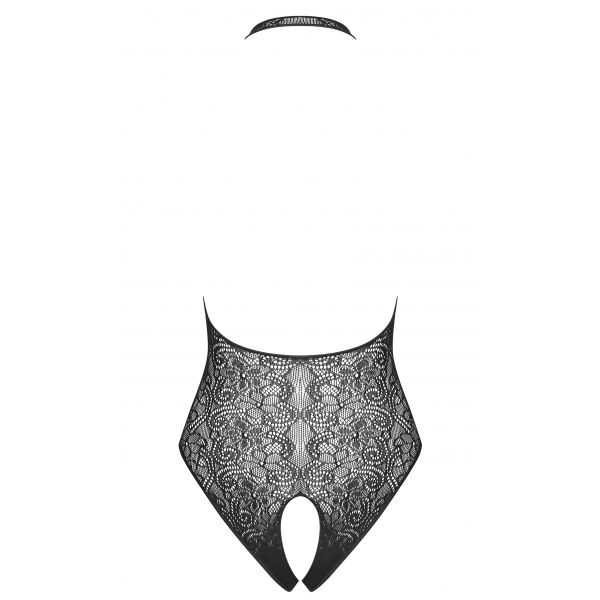 Детали: соблазнительное, черное боди с нежным цветочным узором, ремешок на шее - кокетливо обнаженная спинка, имитация шнуровки спереди - пикантная деталь, открытая промежность, исключительно четкий рисунок и прочное переплетение, эластичный и идеально облегающий трикотаж Multistretch.
