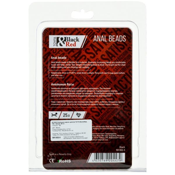 Длинная анальная цепочка черного цвета ToyFa 31 см