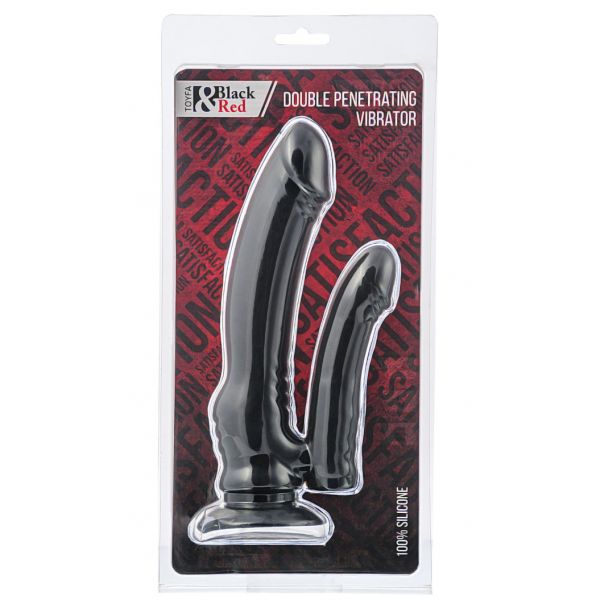 Двойной черный вибратор с присоской Toyfa 19 см