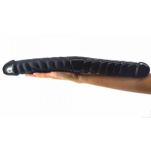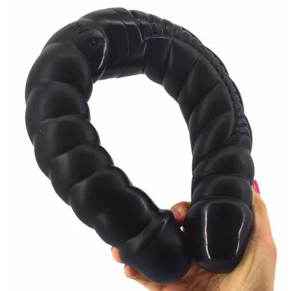 Двухсторонний спиралевидный фаллоимитатор черного цвета