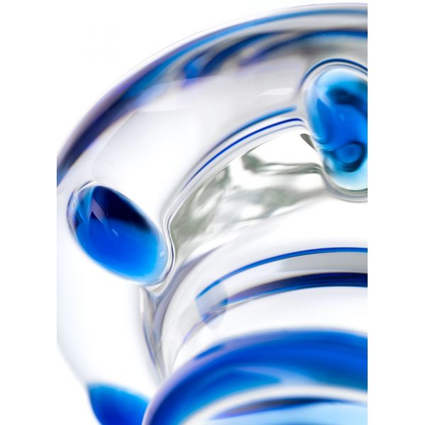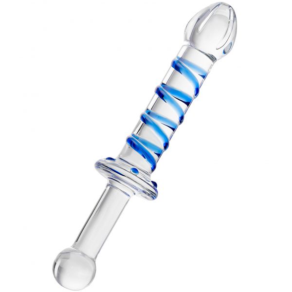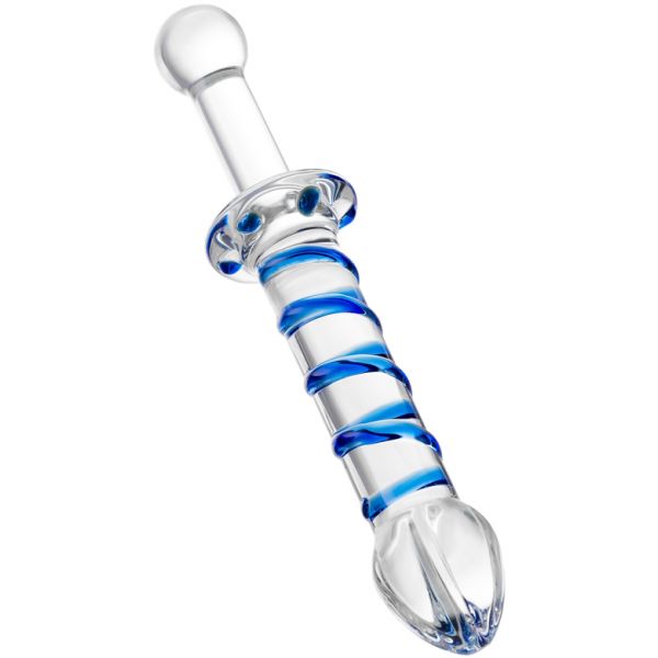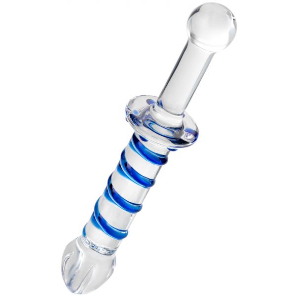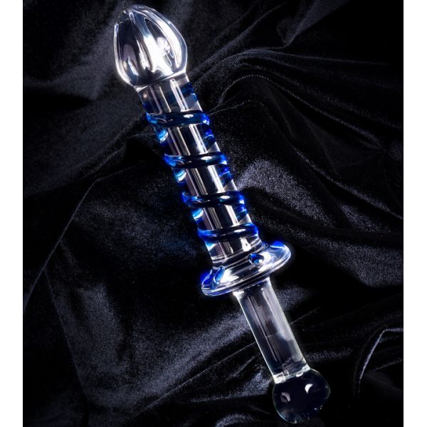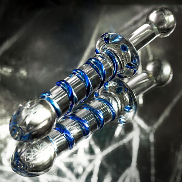 Двусторонний стеклянный фаллоимитатор с массажным рельефом