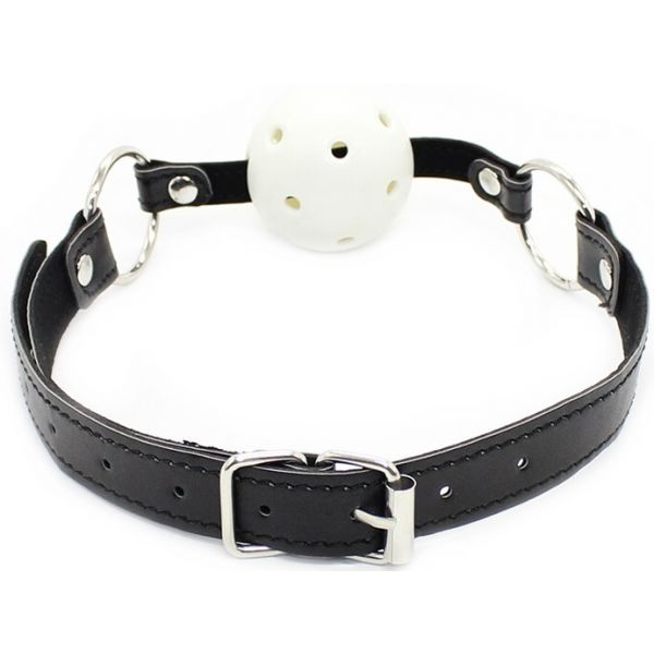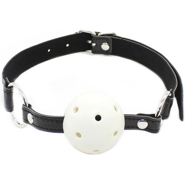 Кляп-шар имеет универсальный размер, который удобно регулируется при помощи пряжки, а специальные дырочки в шаре облегчают дыхание и обеспечивают полный комфорт.