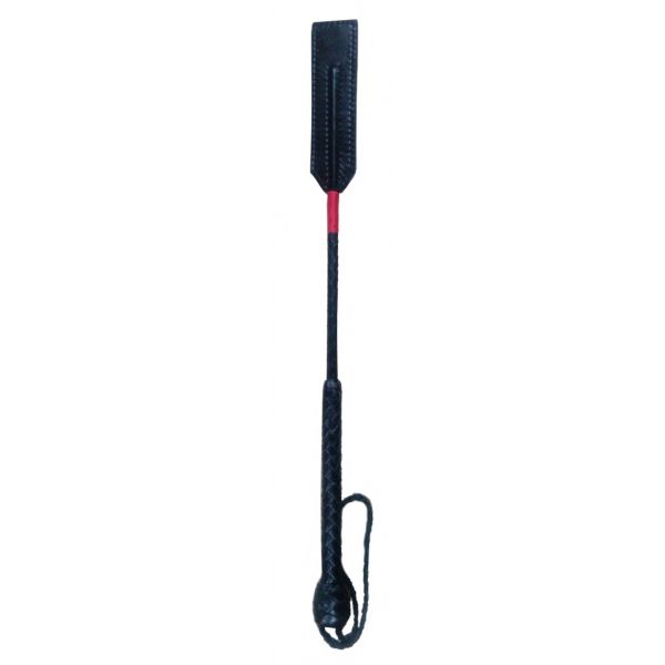 Изящный стек из натуральной кожи, примечателен узкой ручкой с петлей на конце и наконечником имеющим прямоугольную форму.