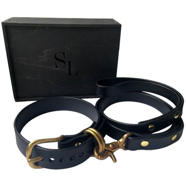 Эксклюзивный ошейник с поводком из натуральной кожи Skin Love в деревянном боксе