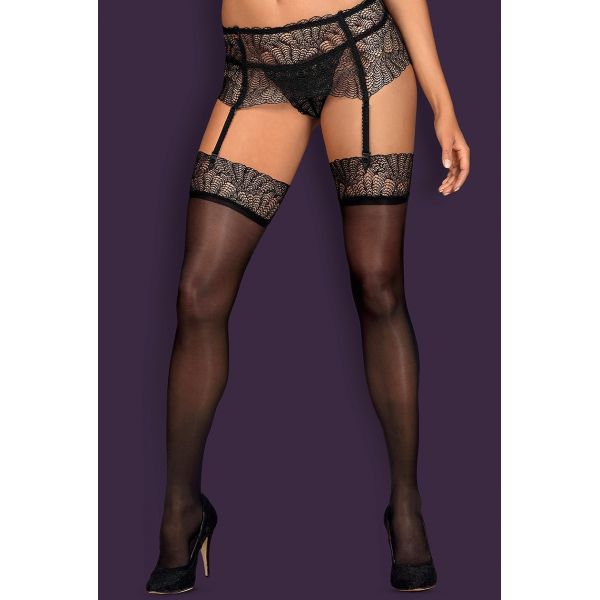 Детали: очаровательные черные чулки, нежное кружево с красивым узором, нежная, слегка эластичная ткань Multistretch.