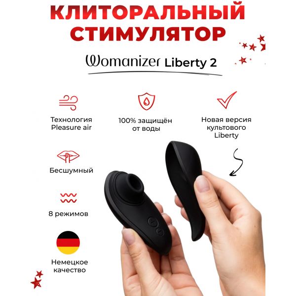 Вакуумный стимулятор клитора Womanizer Liberty 2 - приготовьтесь к незабываемым ощущениям, ведь технология Pleasure Air и 8 захватывающих уровней интенсивности выведут ваше удовольствие и стимуляцию клитора на новый уровень.