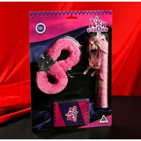 Эротический набор Ахи-вздохи: наручники, плётка, фанты