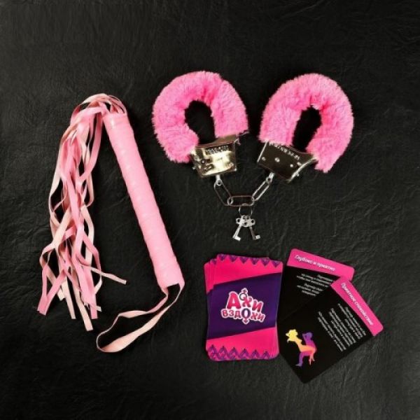 наручники, плетка, 10 карт с фантами.