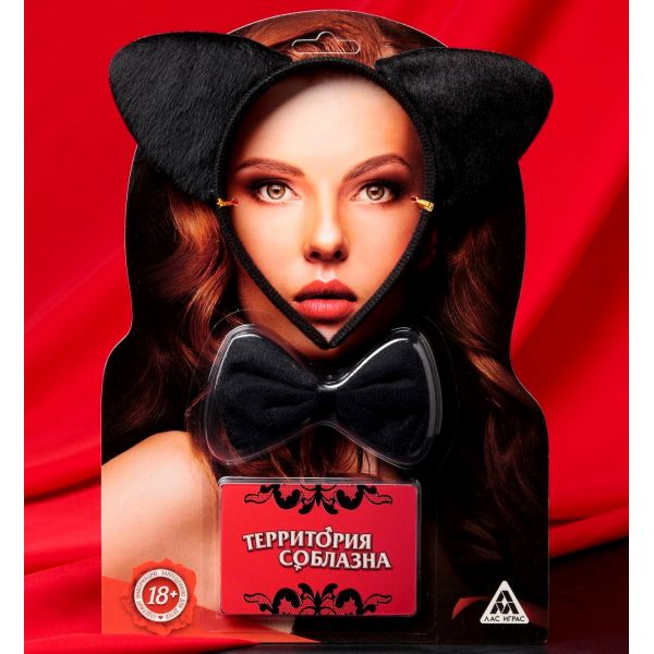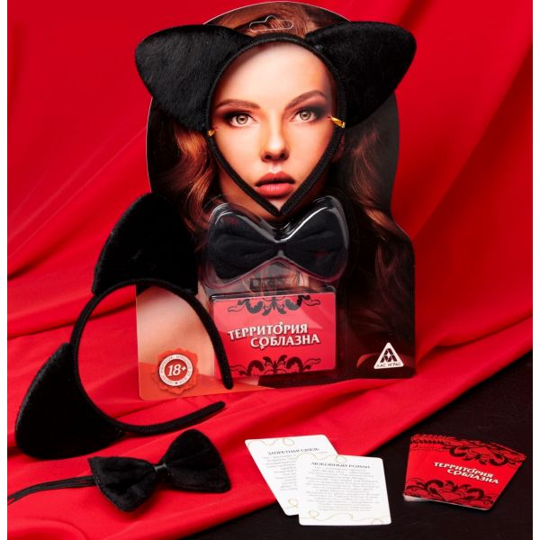 Эротический набор Территория соблазна: Женщина-кошка - ободок, галстук-бабочка, 10 карт
