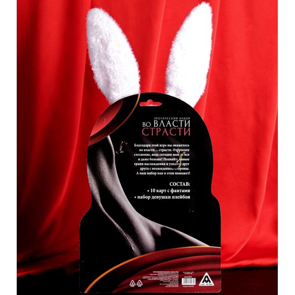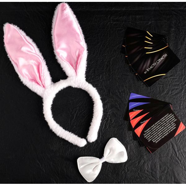 Эротический набор Во власти страсти: Девушка-плейбой - ободок с ушками, галстук-бабочка, 10 карт