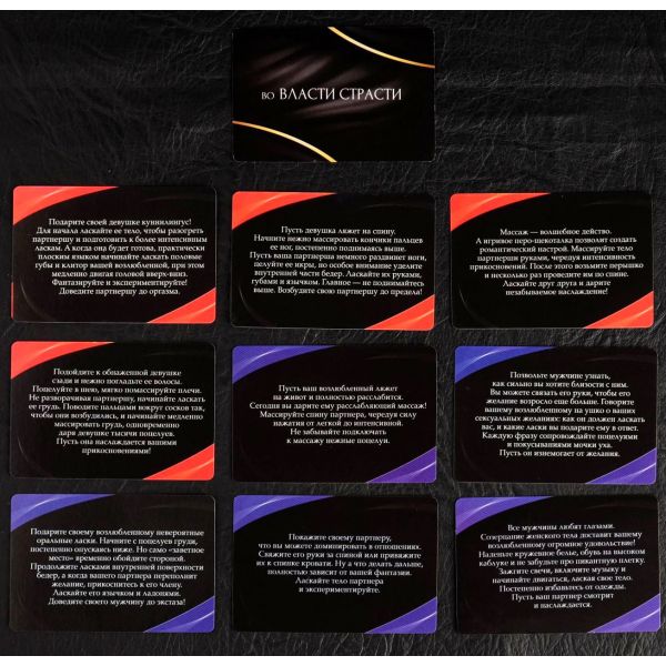Внутри вас ждёт 10 карточек с фантами, а именно — с вариантами ролевых игр.