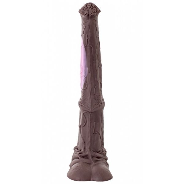 Член коня выполнен в насыщенном сером цвете с белым пятном на стволе, которое придает пикантности. Большая мошонка, большая выпуклая шершавая головка, покрытая пупырышками. Ствол члена с плотным ободком, складками и рельефными венками. Всё это подарит Вам неповторимые ощущения, которые прежде Вы не испытывали не где и никогда.