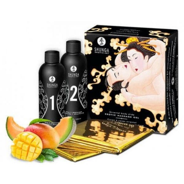 Гель для NURU массажа в наборе Shunga дыня-манго 225 мл, 3 предмета в упаковке