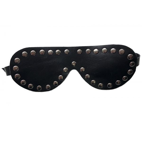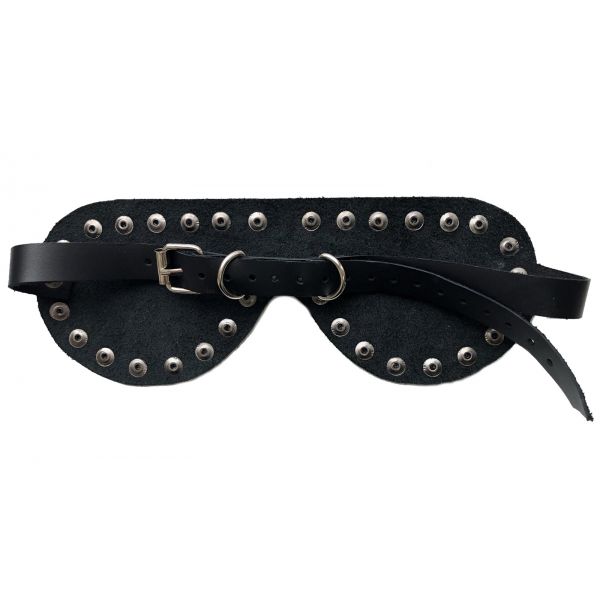 Маска изготовлена из натуральной черной кожи, декорирована металлическими заклепками.