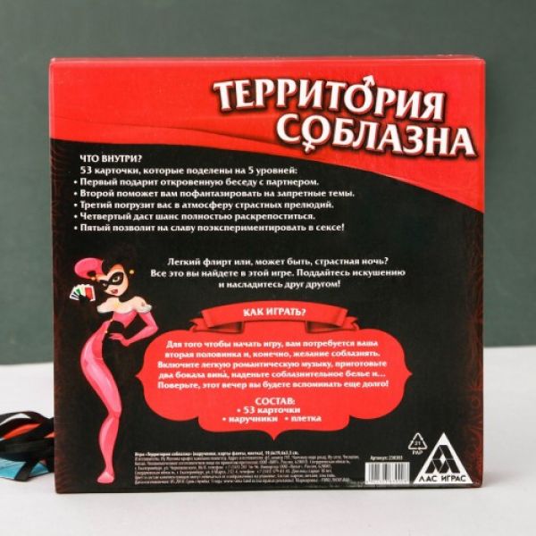 Игра секс Территория соблазна в комплекте плетки, наручники и 53 карточки-фанта