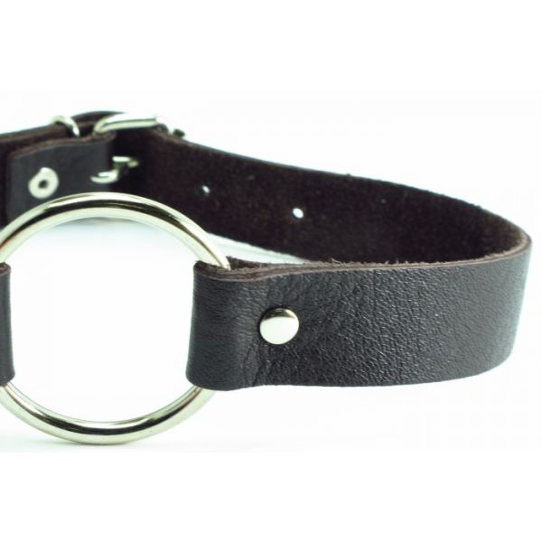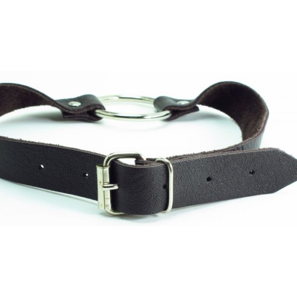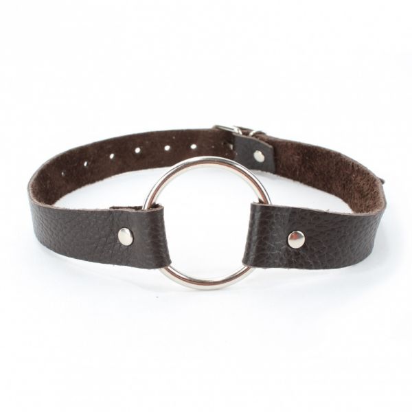Кляп в виде открытого кольца на коричневом ремешке, изготовленном из качественной кожи (ширина ремня - 2 см).