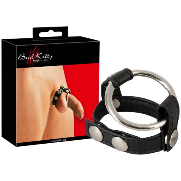 Кожаный хомут на пенис со сменными металлическими кольцами Bad Kitty