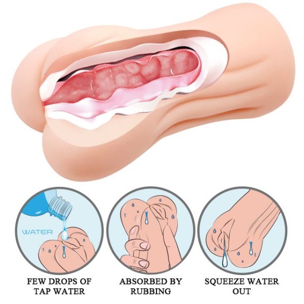 Особенность игрушки заключается в том, что при добавлении нескольких капель воды в тоннель мастурбатора, материал принимает консистенцию скользящей, увлажняющей смазки.