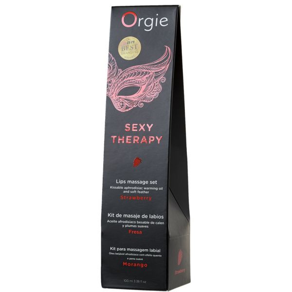 Комплект для сладких игр Orgie Lips Massage со вкусом клубники (сладкое массажное масло и перо), 100 мл
