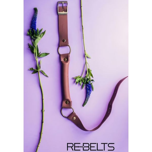 Кляп-трензель изготовлен из натуральной кожи и металлических колец.