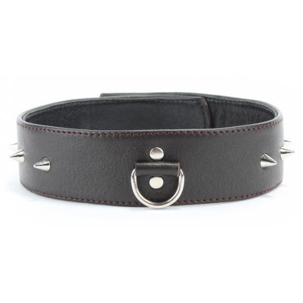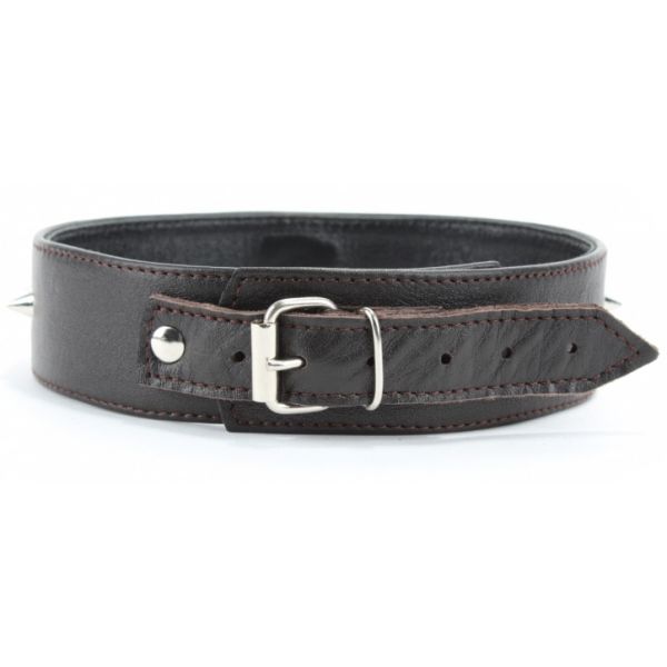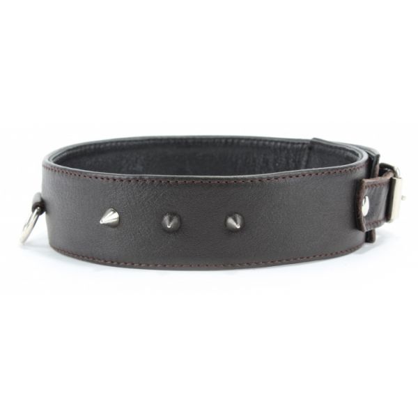 Ошейник выполнен из качественной натуральной кожи, мягкий и комфортный в использовании. Декорирован шипами. Впереди находится сварное полукольцо, ширина ошейника 3,5 см.