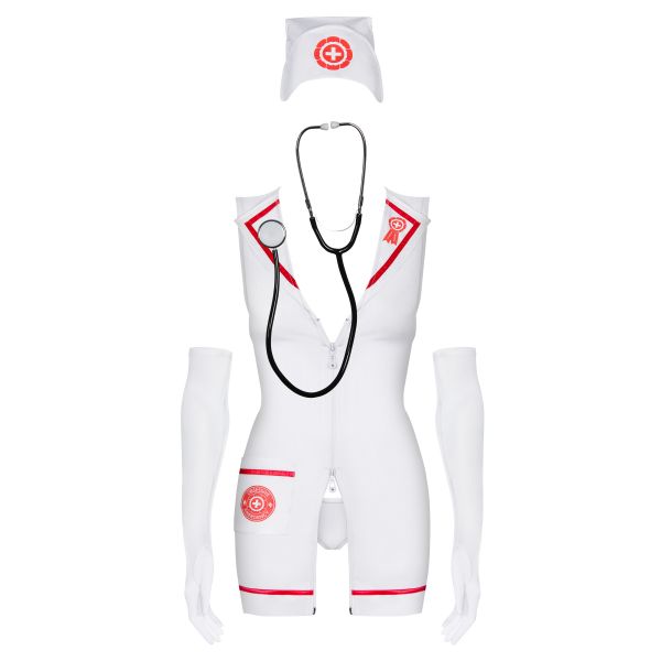 В комплект входят: платье, стринги, перчатки, чепчик, стетоскоп.