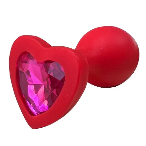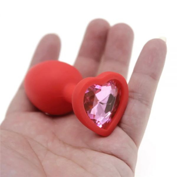 Красная силиконовая пробка S с розовым кристаллом в форме сердца