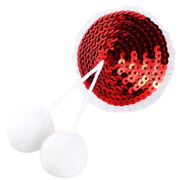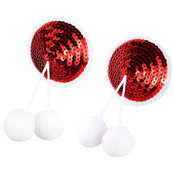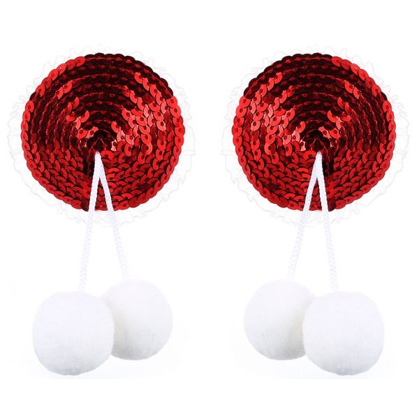 Красные блестящие пэстисы с помпонами