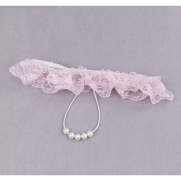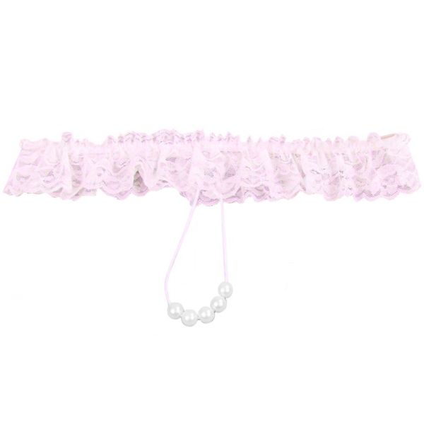 Кружевные розовые трусики с жемчужной нитью