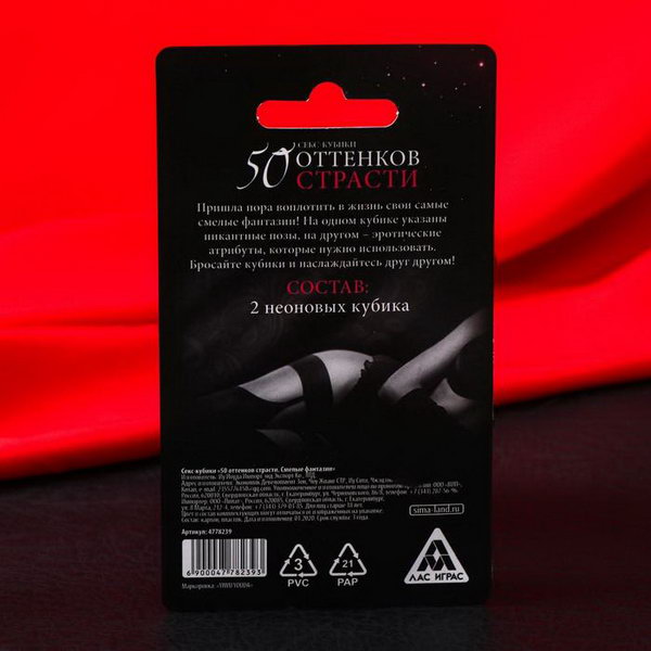 Кубики неоновые 50 оттенков страсти: смелые фантазии, 2 шт
