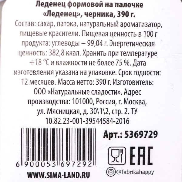 Состав: сахар, патока, натуральный ароматизатор, пищевые красители