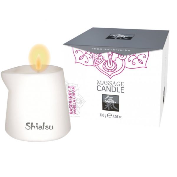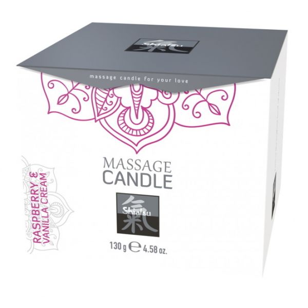 Массажная аромасвеча Shiatsu с ароматом малины и ванильного крема 130 гр